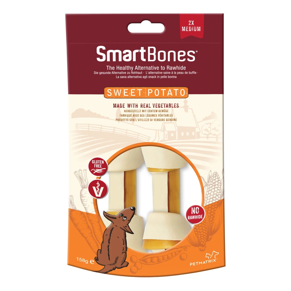 Smartbones Sweet Potato MediumSmartbones zijn gezonde kauwsnacks speciaal voor je hond. Deze kauwsnacks bevatten geen runderhuid en zijn daardoor makkelijker te verteren voor je hond. Deze snacks zijn daarom een goed alternatief voor runderhuid snacks. Kauwen is een natuurlijk instinct van je hond, vrijwel alle honden kauwen graag op speelgoed, snacks of tafelpoten. Om te voorkomen dat je hond aan tafelpoten gaat kauwen moet je hem iets geven waarop hij mag kauwen zodat hij mentaal gestimuleerd