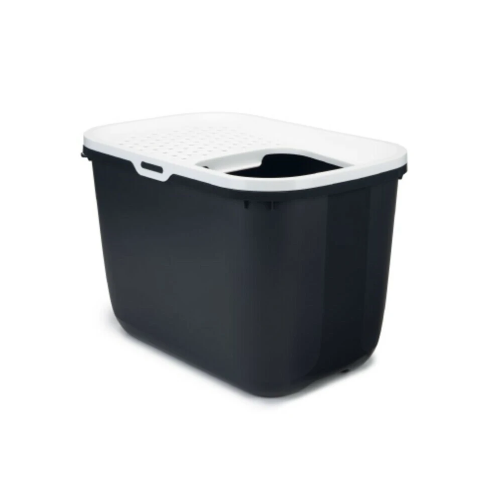 Beeztees Hop In – Kattenbak – Grijs De Hop In Kattenbak is net even wat anders als andere kattenbakken. Deze kattenbak heeft namelijk de ingang aan de bovenkant, zodat katten verscholen hun behoefte kunnen doen en de kattenbakvulling niet gemakkelijk de bak uit kan vallen. Bovendien is de Hop In Kattenbak ook onbereikbaar voor honden en kruipende kinderen. Dit kattentoilet is eenvoudig schoon te maken en kan worden gevuld met kattenbakvulling, mede dankzij de compleet afneembare deksel. De