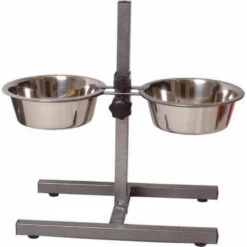 Boon H-standaard Hamerslag met Rvs BakkenDeze handige verstelbare dubbele voerbakken zorgen ervoor dat jouw hond in de meest natuurlijke stand en houding eet en drinkt. De r.v.s. voerbakken zijn op de juiste hoogte te stellen (gelijke hoogte van de maag) middels de bijpassende hamerslag standaard. Eten in de normale rechtopstaande houding van de hond bevordert de spijsvertering en laat de hond in een meer ontspannen houding zijn voeding tot zich nemen. Door de bakken op gelijke hoogte van de maa
