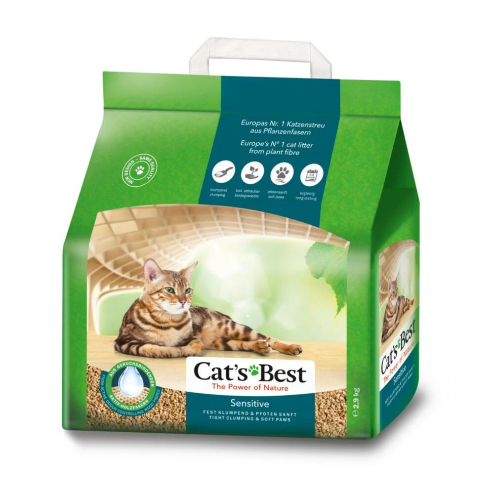 Cats Best Sensitive 8 literCat’s Best Sensitive is speciaal ontwikkeld voor gevoelige katten en is door de fijne korrelgrootte bijzonder zacht voor de tedere poten. Deze eigenschap zorgt ook voor overeenkomende compacte klonten, die gemakkelijk te verwijderen zijn en voor een zuinig verbruik zorgen. Cat’s Best Sensitive ontplooit zijn antibacteriële werking heel natuurlijk door een werkzame stof uit de natuur, die de groene parels aan het strooisel toevoegen. Ze ondersteunen zo