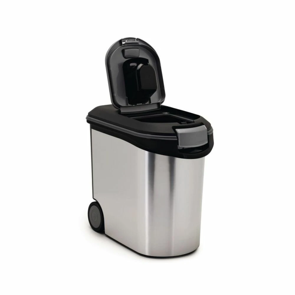Curver Voedselcontainer MetallicDeze mooie voedselcontainer is een echte eyecatcher. De voedselcontainer met metallic look blijft luchtdicht dankzij de rubberen afsluitrand. Dit betekent dat de brokken gegarandeerd vers blijven en dat alle goede voedingsstoffen behouden worden. Het klepje aan de voorkant in combinatie met het handvat aan de achterkant zorgt voor het gemakkelijk uitschenken van brokken.Houdt de brokken versVoorzien van een handvat aan de achterzijdeVoorzien van wielen aan de acht