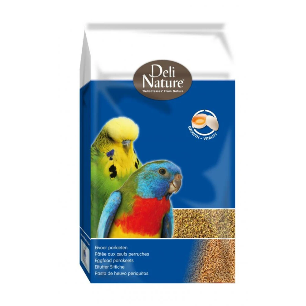 Deli Nature DoviX Eivoer ParkietenDoviX Eivoer Parkieten van Deli Nature is droog eivoer op basis van verse eieren voor grasparkieten en kleine parkieten zoals neophemau0027s, forpussen, catharinau0027s. Om het eivoer te bereiden kan gebruik gemaakt worden van gekiemde zaden, fruit en/of groenten en cous-cous. Verrijkt met gammarus, een bron van extra dierlijk eiwit. Verkrijgbaar in 1 kg en 10 kg.Droog eivoer op basis van verse eieren voor grasparkieten en kleine parkieten zoals neophemau0027