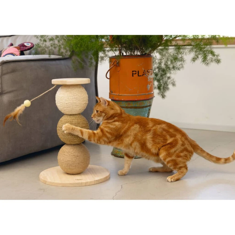 Designed by Lotte Krabbollen Hout ElioDe Designed by Lotte Krabbollen Elio zijn echt een design item voor in je huis, waarmee jouw kat veel krabplezier zal hebben! Elio is gemaakt rubberhout, wat mooi lichtcremig van kleur is. Daarnaast bevat iedere bal een eigen soort touw: jute, sisal of zeegras. Er hangt een leuk speelveertje aan Elio, voor extra speelplezier! Met deze krabbollen doe je niet alleen jouw kat plezier, maar het staat ook echt fantastisch in je interieur!Gemaakt van rubberhoutGeb