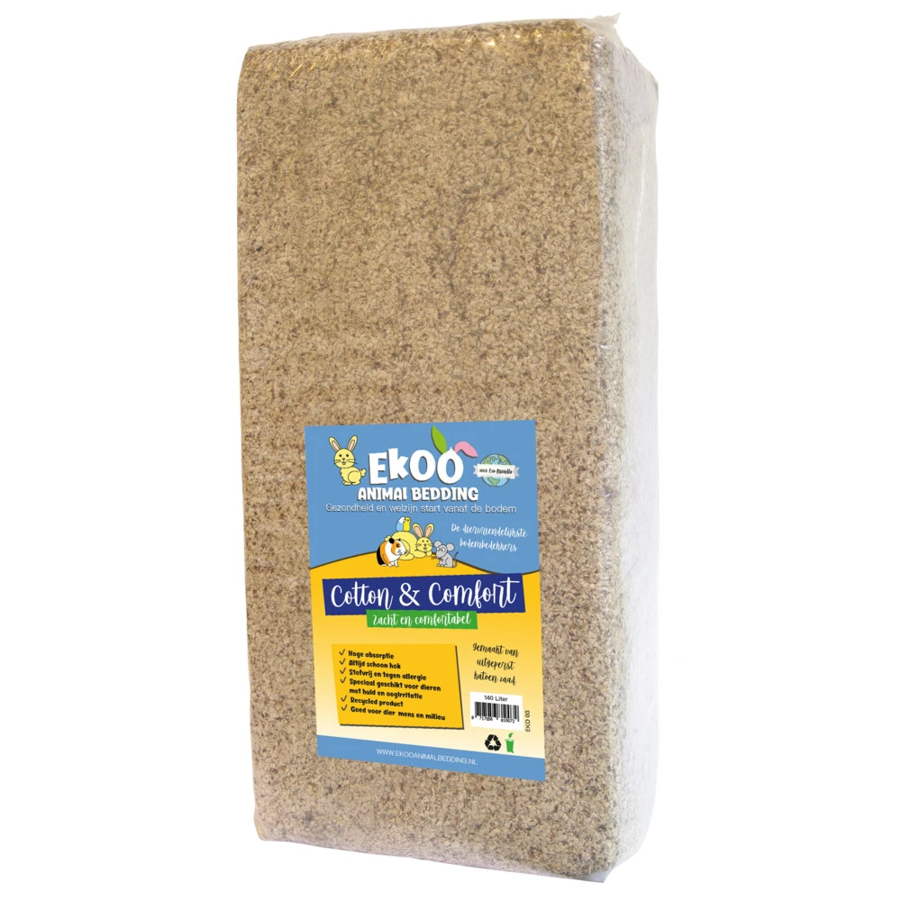 Ekoo Bodembekking Cotton en Comfort 140 literEkoo Cotton en Comfort is een zacht en comfortabel product. Gemaakt van 100% uitgeperst katoenzaad met natuurlijke katoenvezel. Land van oorsprong: Benin – West- Afrika. Voor welke dieren: konijn, cavia, hamster, muis en een deel van de ratten.Hoge absorptieAltijd een schoon hokStofarm en tegen allergieSpeciaal geschikt voor dieren met voetzoolproblemen, oog- en huidirritatieRecycling productGoed voor dier, mens en onze planeet