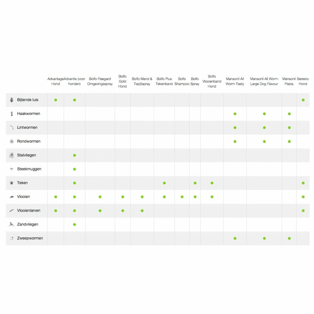 Mansonil All Worm Ontworming Tabletten Hond vanaf 2,5 kgMansonil All Worm is een ontwormingsmiddel met een brede werking. Het doodt de belangrijkste rond- en lintwormen die bij de hond voorkomen na een éénmalige behandeling.Brede werking tegen rond- en lintwormen;Smakelijke tabletten;Geen bijwerkingen.