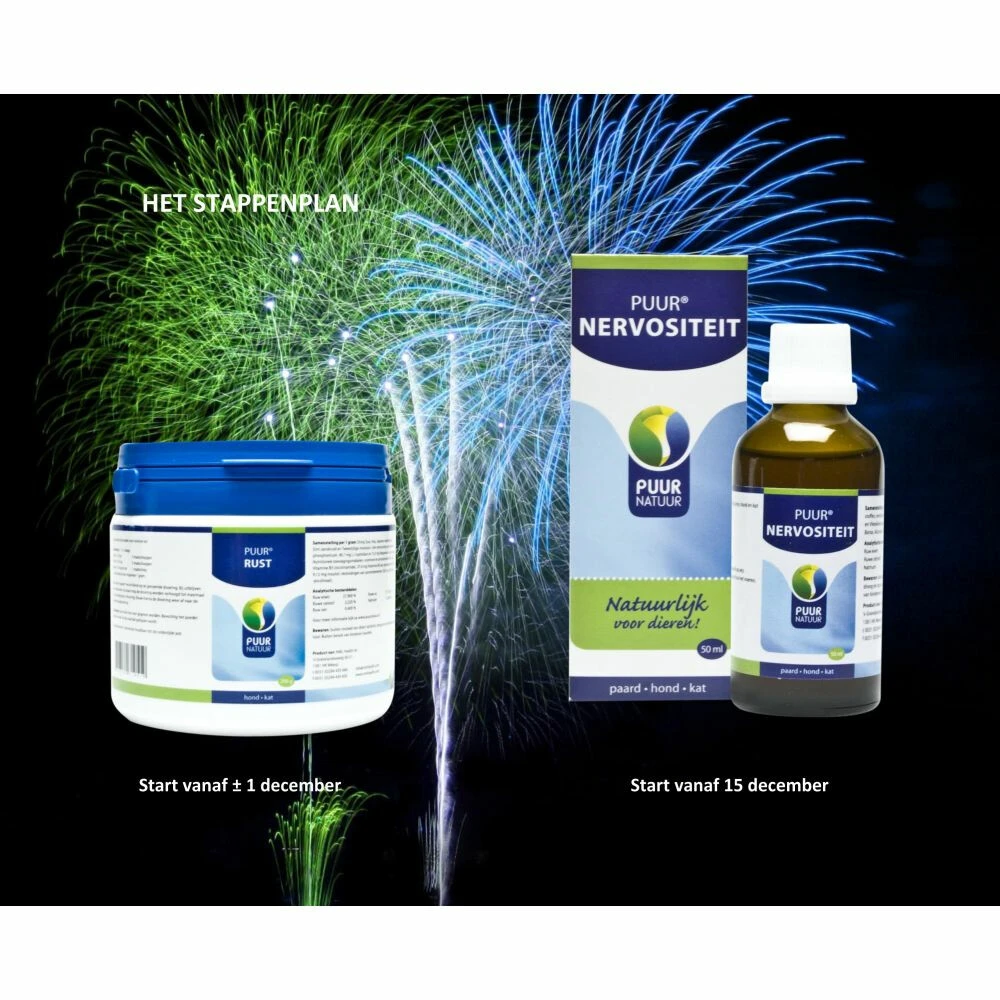 PUUR Nervositeit tegen nervositeit en angst bij dierenPuur Nervositeit werkt bijzonder goed bij harde geluiden, vuurwerk of onweer. Puur Nervositeit kan ook worden gegeven als rustgevend middel na operaties en tijdens een reis. Puur Nervositeit is geschikt voor kat, konijn, hond en paard.Geeft rustWerkt ontspannendMaakt het dier niet suf100% natuurlijk